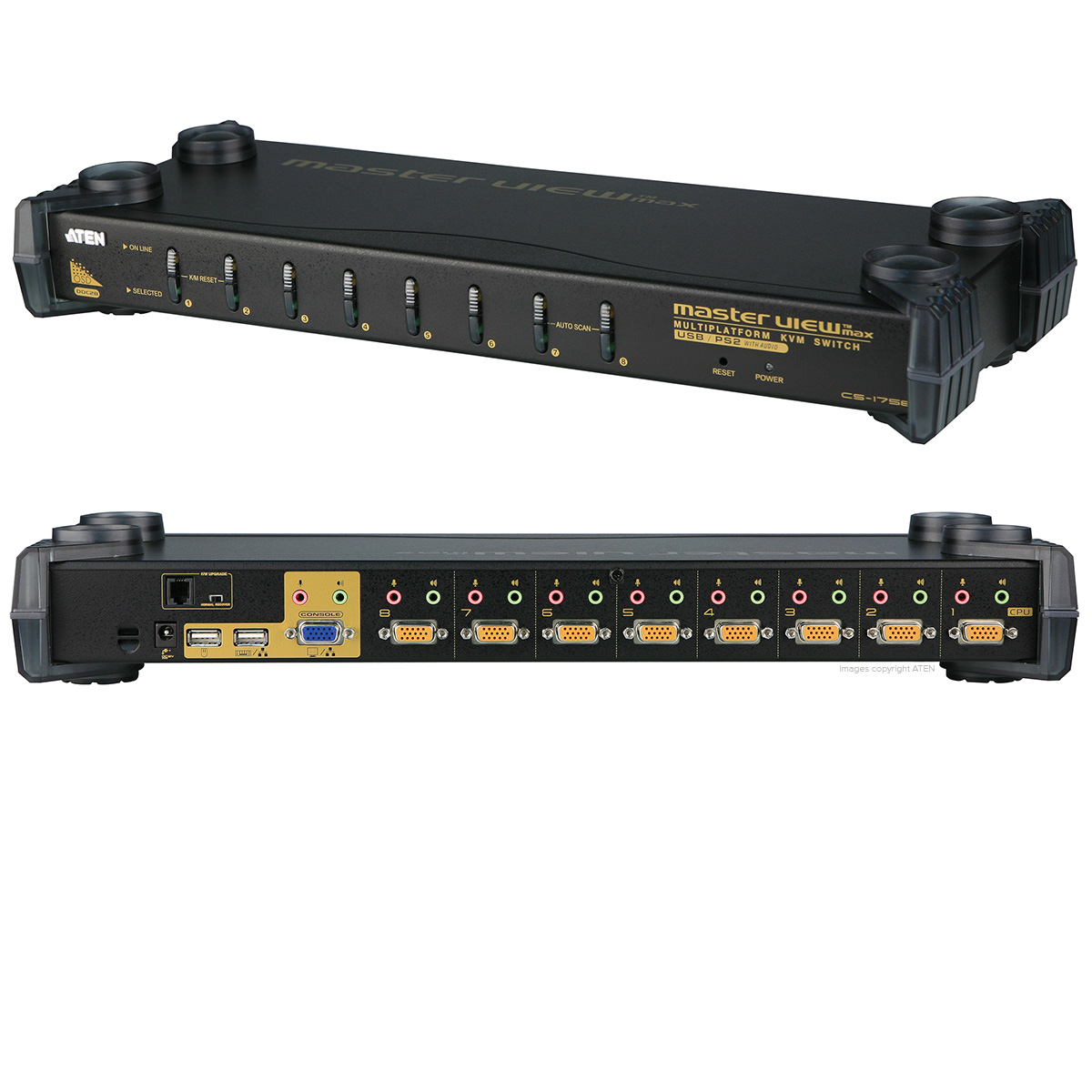 KVM Switch, 8 Port (HD-15S, Speaker Audio Jack, Microphone Audio Jack), Supports up to 2048 x 1536 Resolution, Auto PS/2 and USB interface detection